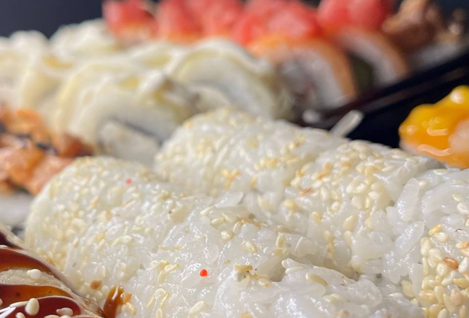 Угорь, крем сыр, огурец, мидии глазированные, унаги, кунжут, рис